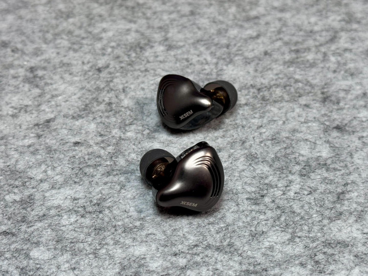 然后,每个耳机上面都有两个镀金2-pin可换线的接口,耳机外侧一层是咖啡色亮面材质,刻有西圣品牌logo,内侧一整个为透明设计,可清晰看到内部设计和动圈大小。